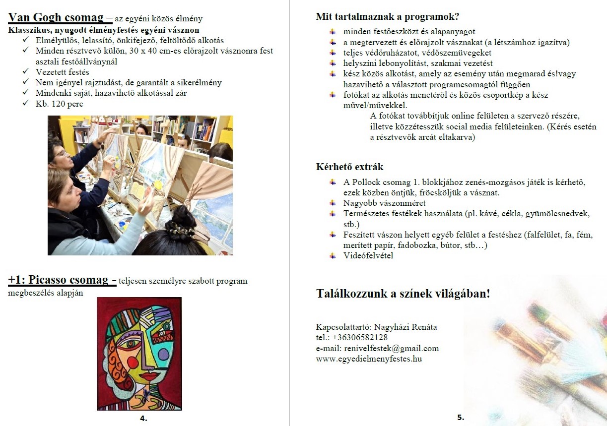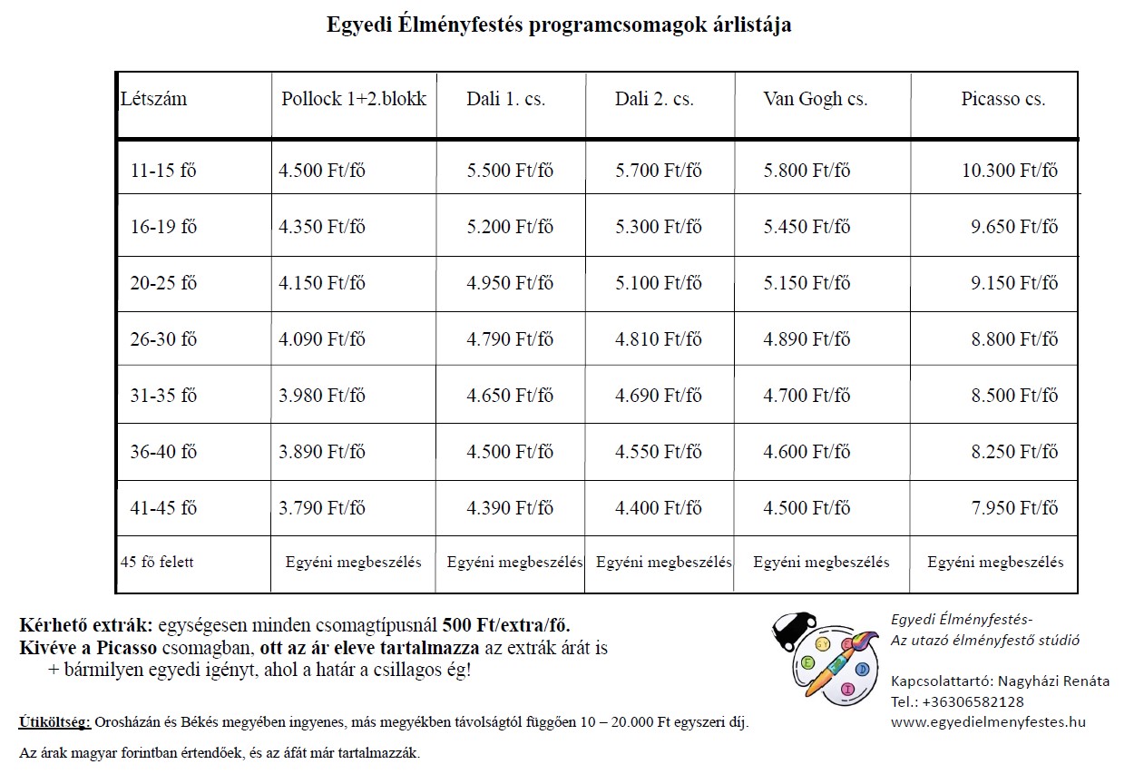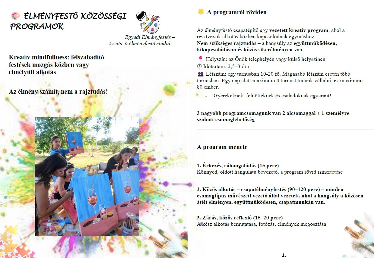 Születésnap? Lány vagy legénybúcsú? Céges csapatépítő? Nyári táborba kellene egy plusz program? Családi nap az iskolában? Falunapra közösségi élmény? Múzeumi tematikus festés? Könyvtári klubdélután?