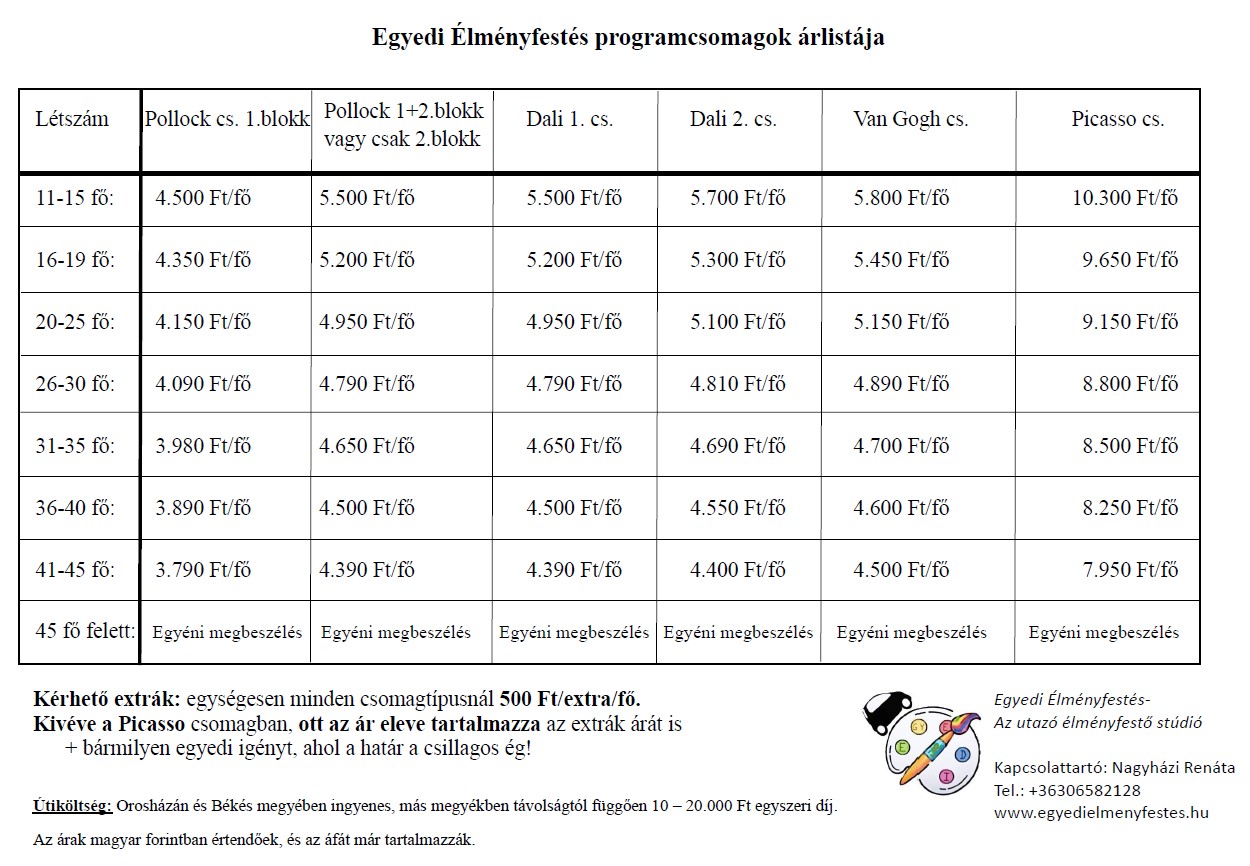 Születésnap? Lány vagy legénybúcsú? Céges csapatépítő? Nyári táborba kellene egy plusz program? Családi nap az iskolában? Falunapra közösségi élmény? Múzeumi tematikus festés? Könyvtári klubdélután?